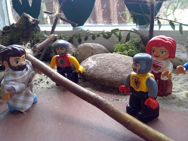 Um den Kindern die Erzählungen aus der Bibel in kindgerechter Form zu vermitteln, setzen wir häufig das sogenannte „Kamishibai“, ein Erzähltheater ein. Mit aussagekräftigen, stimmungsvollen Bildern und in altersentsprechender Textsprache erzählen wir den Kindern die Geschichte und kommen so ins Gespräch mit den Kindern, können Fragen beantworten und gemeinsam die Geschichten in ihrer Vielfalt entdecken und kennenlernen.
