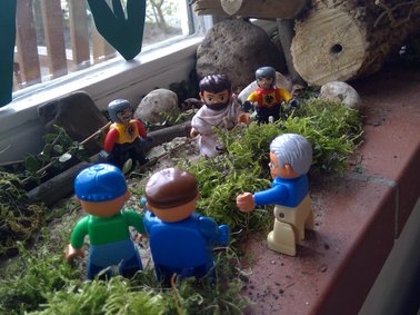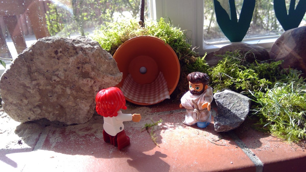 Auf den Bildern sehen Sie den Osterweg, den die Igelgruppe im Laufe der Fastenzeit gestaltet hat.