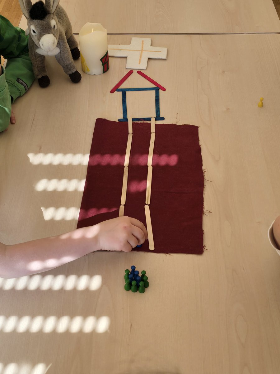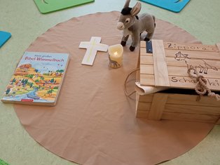 An diesem Tag arbeitet Sie mit den Kindern in Kleingruppen und vermittelt und erarbeitet mit Ihnen gemeinsam Themen aus dem katholischen Jahreskreis und Geschichten aus der Bibel, die unseren Glauben vermitteln. Begleitet wird Frau Niebrügge dabei immer von dem kleinen Stoffesel „Ziporra“. Ziporra hat eine Schatzkiste in ihrem Stall stehen, in der immer das jeweilige Material der Tageseinheit drin zu finden ist. Die Kinder haben einen sehr engen Bezug zu Ziporra und ihre Schatzkiste und gehen begeistert mit in die Kleingruppe.