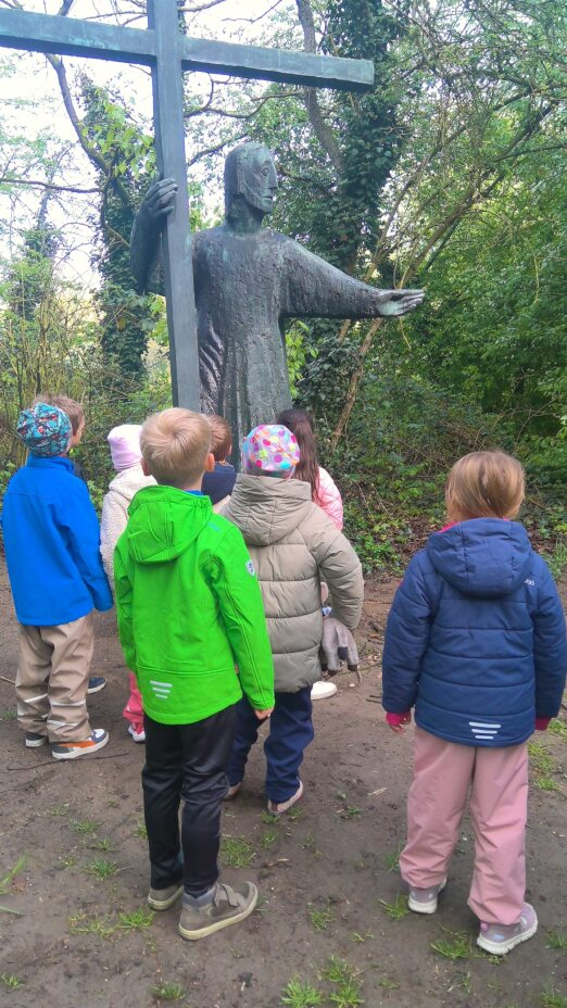 In der Fastenzeit geht Frau Niebrügge mit den angehenden Schulkindern den Kreuzweg an der Ems. Für unsere Vorschulkinder steht ebenfalls ein Besuch der St. Clemenskirche an. Bei einer „Kirchenerkundung“ lernen die Kinder die Vielfalt, Symboliken und Traditionen, die das „Kirchengebäude“ ausmacht, kennen.
